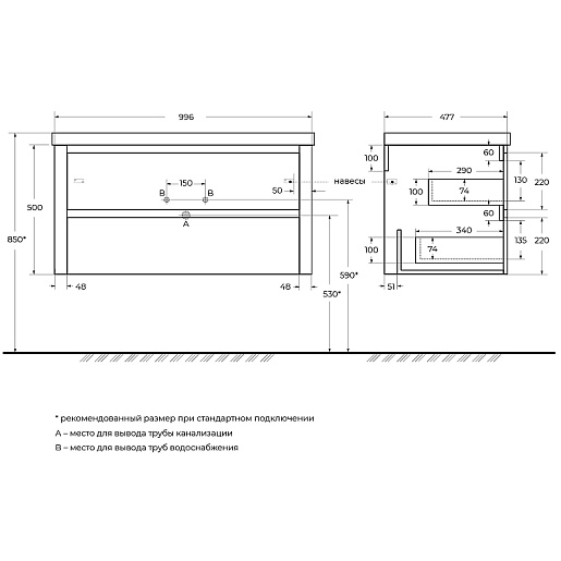 Cezares Тумба под раковину Relax 100 подвесная оружейная сталь