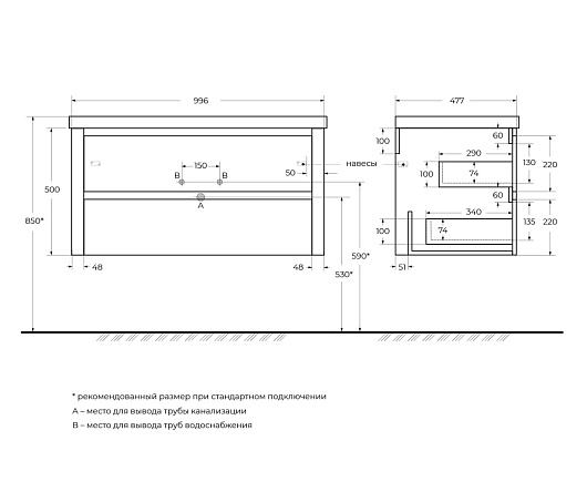 Cezares Тумба под раковину Relax 100 подвесная сатин