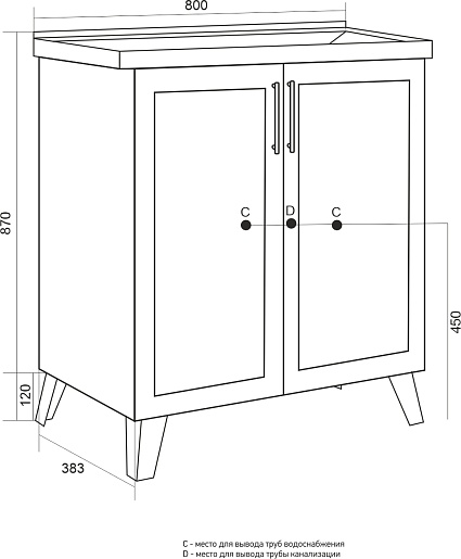 - 2 распашные дверки с механизмом плавного закрытия (доводчиками).