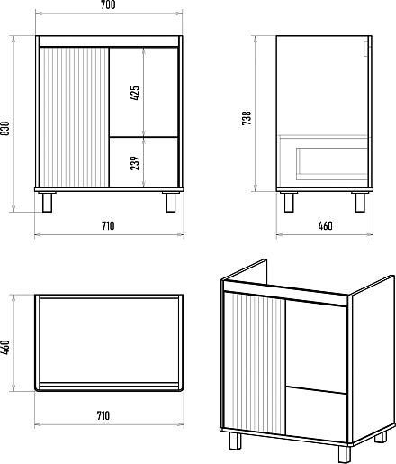 В комплекте: тумба, крепеж, комплект ножек.