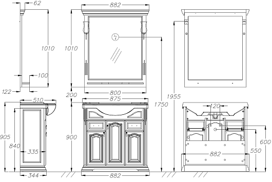 Opadiris Тумба под раковину Риспекто 85 орех антикварный