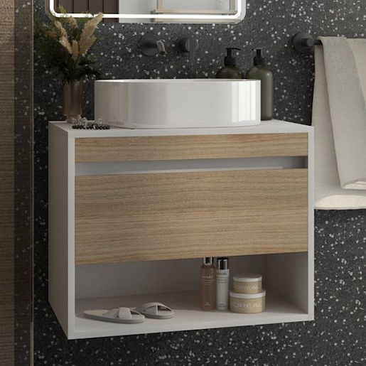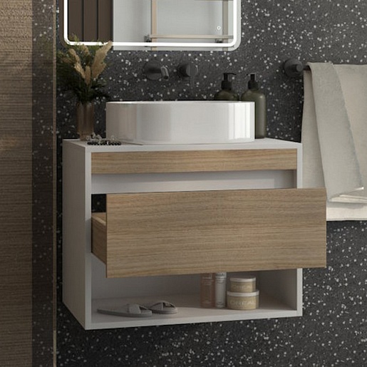 Подвесная тумба под накладную раковину Teymi Ritta 65 белый/дуб - арт. T60538.
