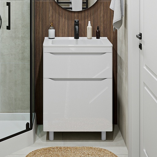 Напольная тумба под раковину Vivon Shelly 60 белая глянцевая.
