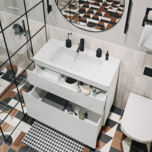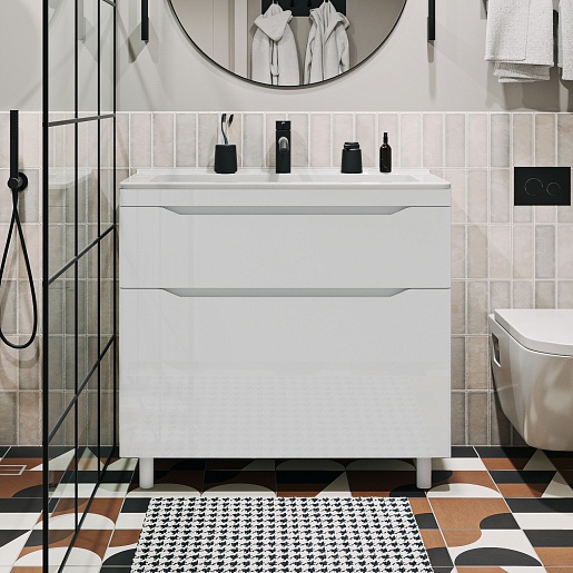 Напольная тумба под раковину Vivon Shelly 90 белая глянцевая.