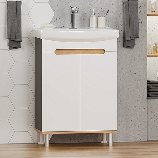 Misty Тумба под раковину Сканди 60 белая/дуб крафт золотой/антрацит