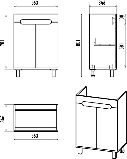 Напольная тумба под раковину Misty Сканди 60 - арт. Э-Ска01060-0150-2Д.