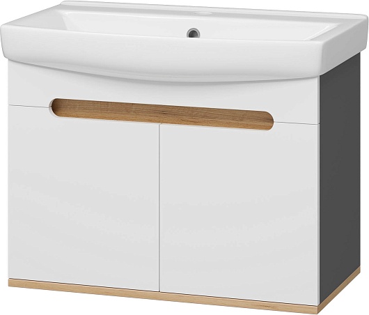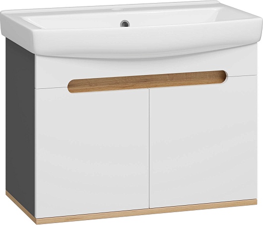 Misty Тумба под раковину Сканди 70 подвесная белая/дуб крафт золотой/антрацит
