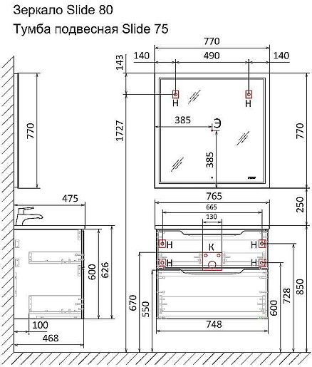 Jorno Тумба под раковину Slide 75 антрацит