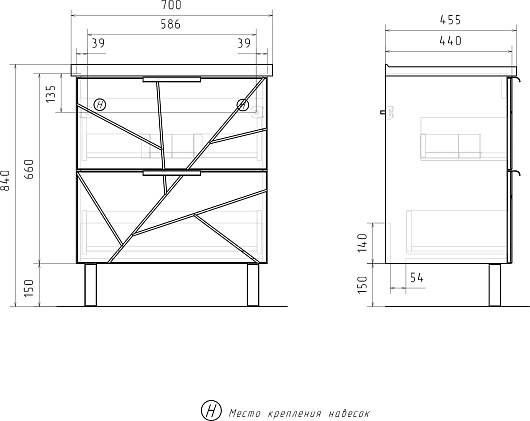 Комплектация: тумба, ножка (2 шт.), крепеж.