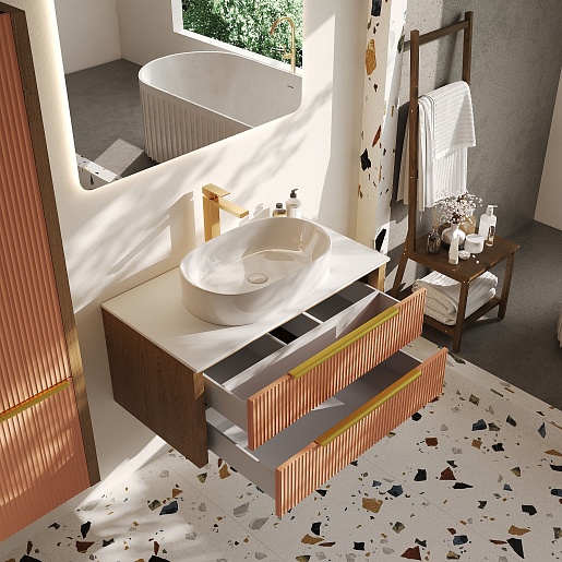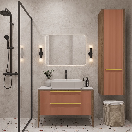 Зов Тумба под раковину Валенсия 100 подвесная бежево-розовая/столешница белая