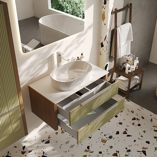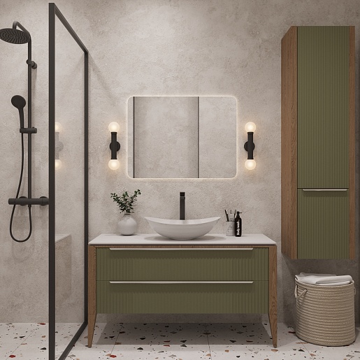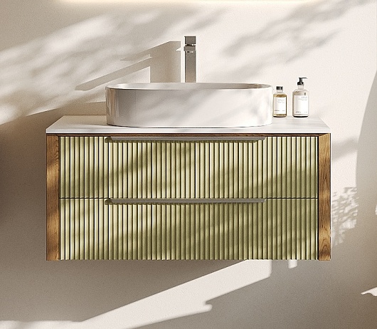 Зов Тумба под раковину Валенсия 100 подвесная зеленый тростник/столешница белая