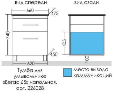 Напольная тумба под раковину Санта Вегас 65 - арт. 226028.