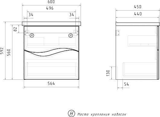 Подвесная тумба под раковину Volna Volna 60.2Y - арт. tpVLN60.2Y-01.