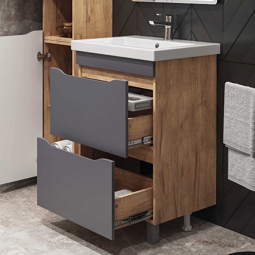 Напольная тумба под раковину Vigo Wave 600-0-2 - арт. 358 дуб золотой.