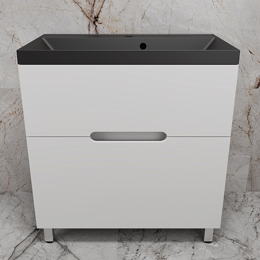 Style Line Тумба с кварцевой раковиной антрацит Матис 80 белая матовая