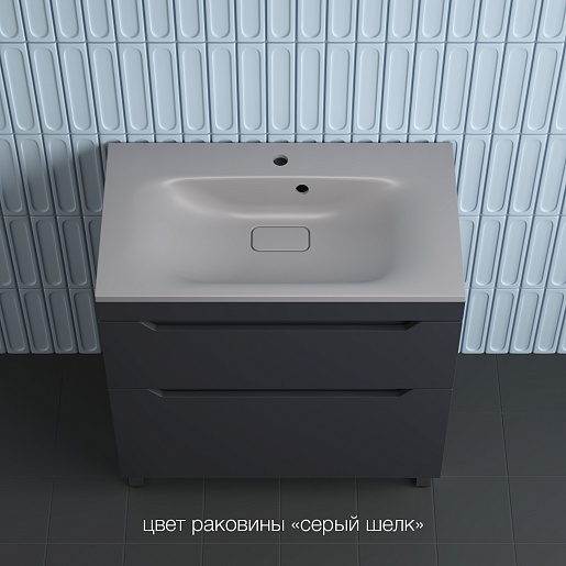 Style Line Тумба с кварцевой раковиной серый шелк Остин 80 графит матовый