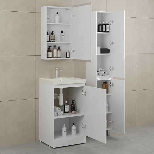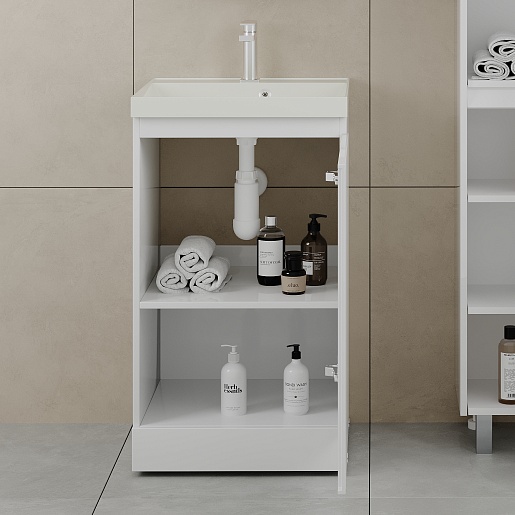 Напольная тумба с раковиной Style Line Батлер 50 белая Люкс антискрейтч Plus - арт. СС-00002488 / СС-00002487.