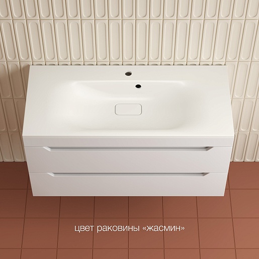 Style Line Тумба с кварцевой раковиной жасмин Остин 100 подвесная белая матовая