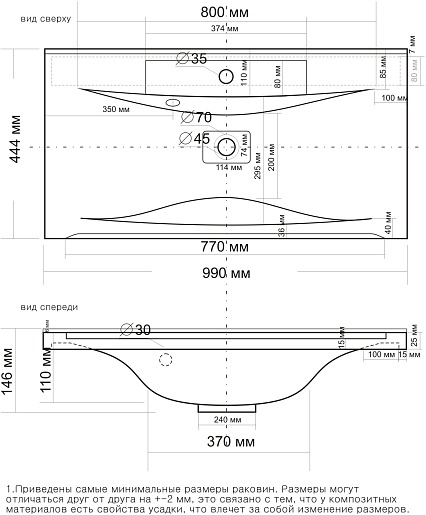 - Раковина из литьевого мрамора со слив-переливом.