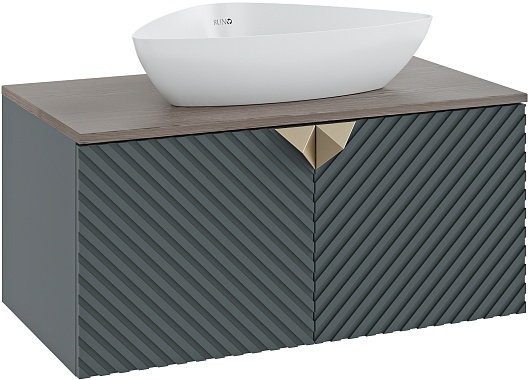 Runo Тумба с раковиной Андорра 85 Terzo подвесная зеленый графит/дуб коньячный