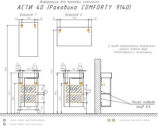 Подвесная тумба с раковиной Comforty Асти 40 9140 - арт. 00-00012835CF.