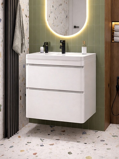 Подвесная тумба с раковиной Vivon Atwood 60 белая матовая - арт. Atwood-60-podvesnaya-WH-matte / Atlantik-60.