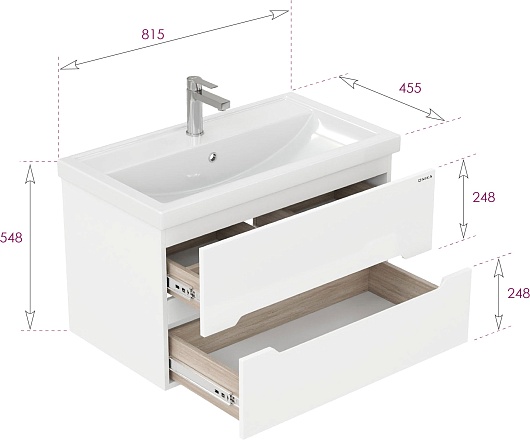 Подвесная тумба с раковиной Onika Айленд 80 - арт. 108060 / 4640021064733.