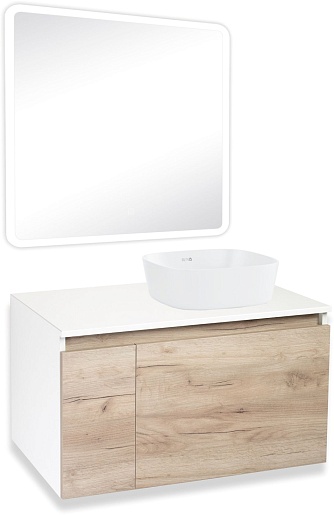 Тумба под раковину Бари 80 подвесная дуб крафт/белая