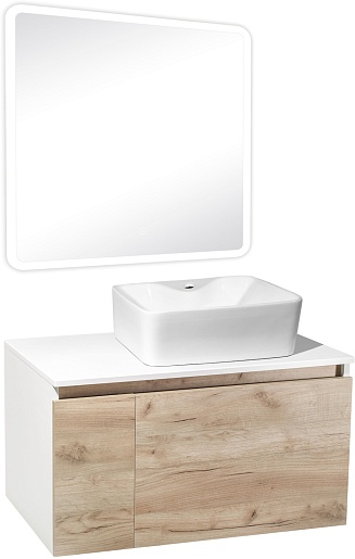 Runo Тумба с раковиной Бари 80 Lavello подвесная дуб крафт/белая