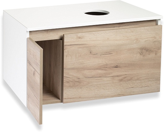 Тумба под раковину Бари 80 подвесная дуб крафт/белая