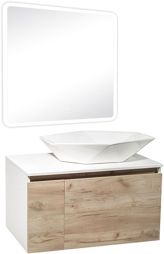 Runo Тумба с раковиной Бари 80 Poligono подвесная дуб крафт/белая