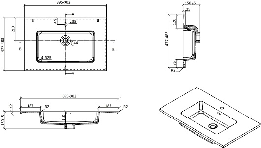 - Покрытие раковины: гелевое Royal DSM производства Reach (Нидерланды) с антибактериальной защитой от водяных пятен, царапин и желтизны.