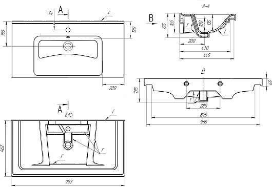 - Керамическая раковина со слив-переливом.