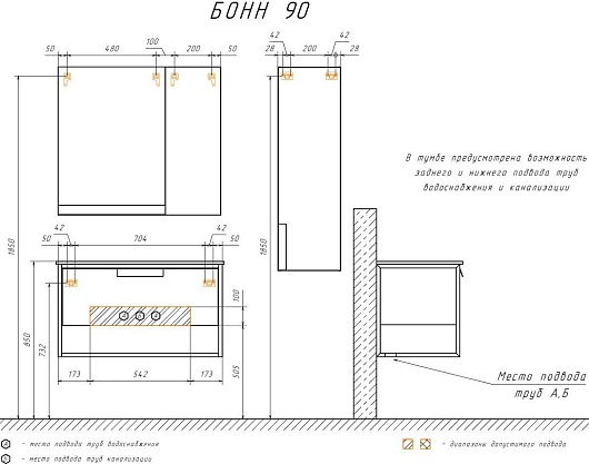 Подвесная тумба с раковиной Comforty Бонн 90 - арт. 00-00011781CF.