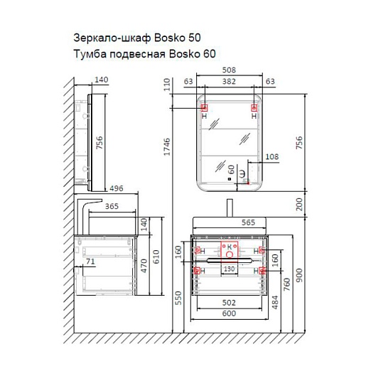 Тумба под раковину Bosko 60 белая Bos.01.60/P/W подвесная