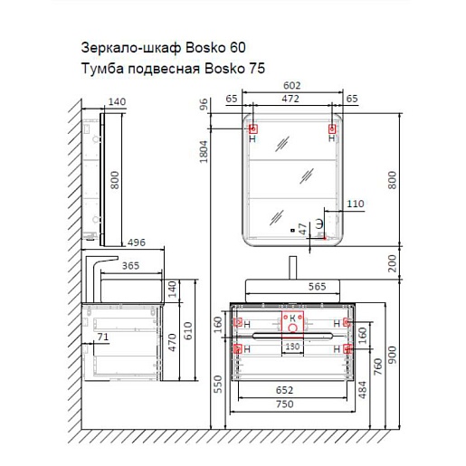 Jorno Тумба с раковиной Bosko 75 белая Bos.01.75/P/W подвесная