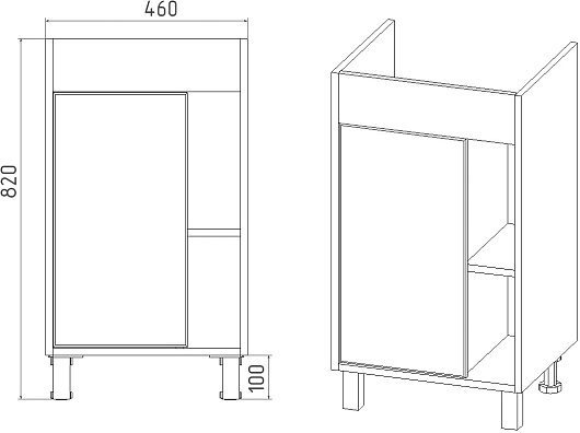 - 1 распашная дверца, 2 открытые полки.