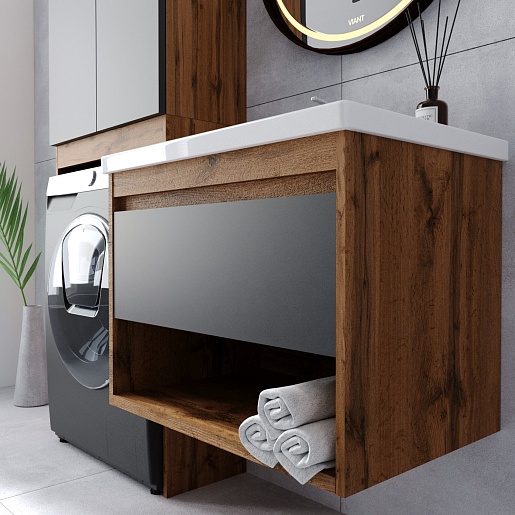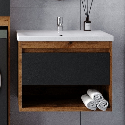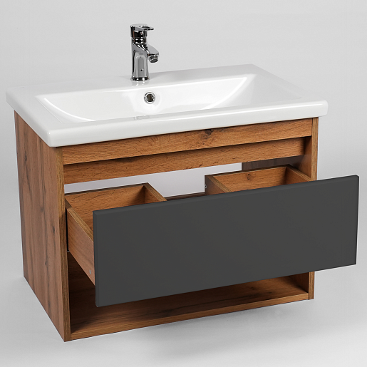 Тумба под раковину Бостон 70 1 ящик подвесная графит/дуб вотан