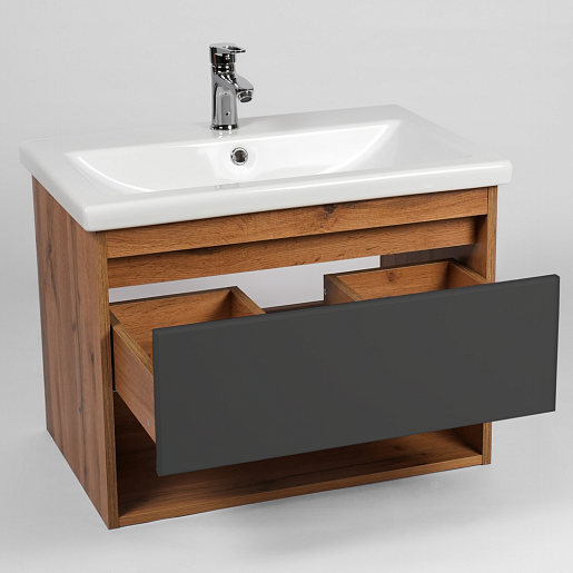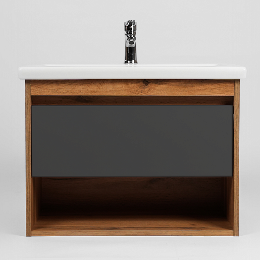 Тумба под раковину Бостон 80 1 ящик подвесная графит/дуб вотан
