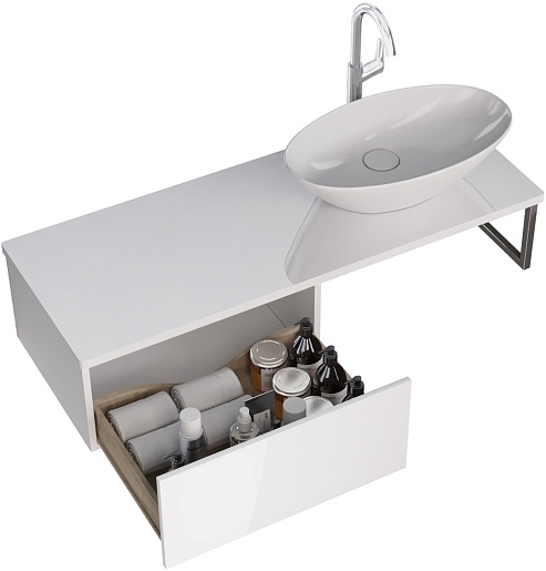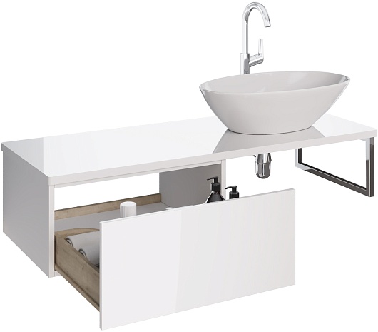 - Металлическая консоль под столешницу с отверстием под раковину и смеситель.