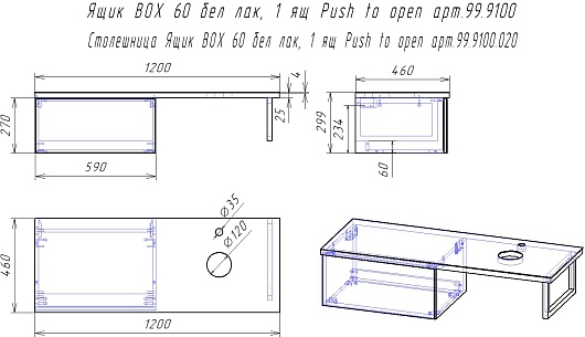 Подвесная тумба с раковиной и столешницей Dreja Box Line 120 - арт. 99.9100 / 99.9101 / 641266 / 99.9102.