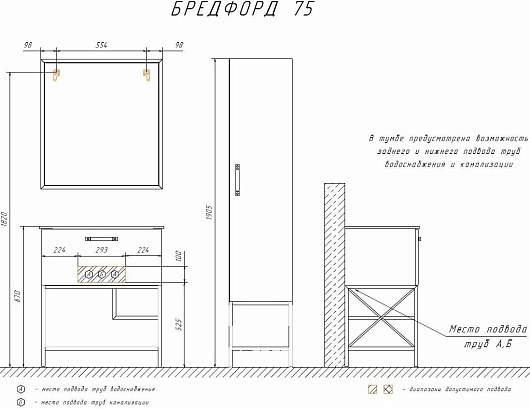 Напольная тумба с раковиной Comforty Бредфорд 75 - арт. 00-00013442CF.