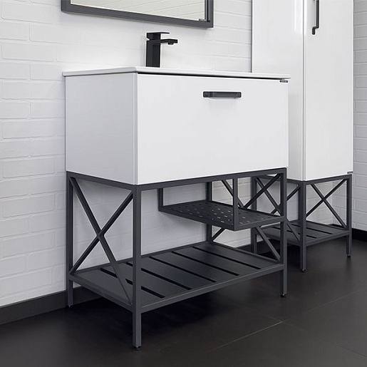 Comforty Тумба с раковиной Бредфорд 75 белая/серый графит