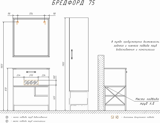 Напольная тумба с раковиной Comforty Бредфорд 75 - арт. 00-00008074CF.