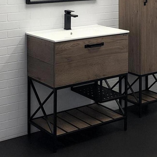 Comforty Тумба с раковиной Бредфорд 75 дуб темный/черный