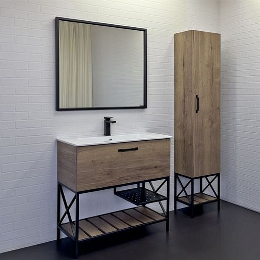 Comforty Тумба с раковиной Бредфорд 90 дуб темный/черный