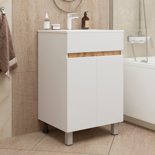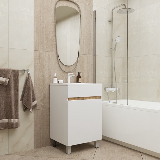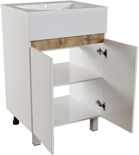 Mixline Тумба с раковиной Брикс 50 2 створки белая/дуб вотан
