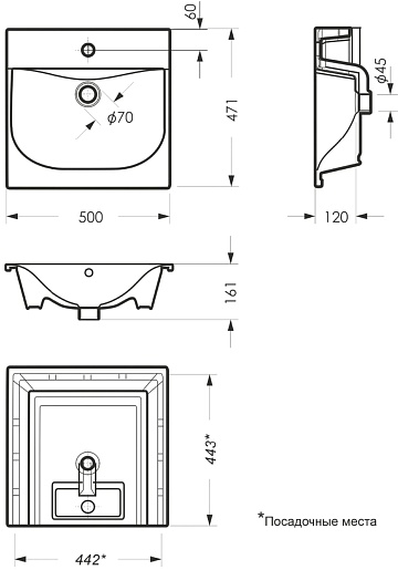 - Керамическая раковина со слив-переливом.