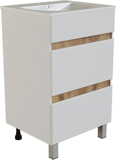 Mixline Тумба с раковиной Брикс 60 2 ящика белая/дуб вотан