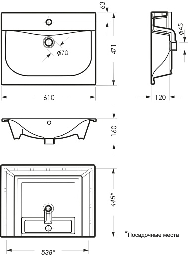 Напольная тумба с раковиной Mixline Брикс 60 - арт. 556809 / 554362.